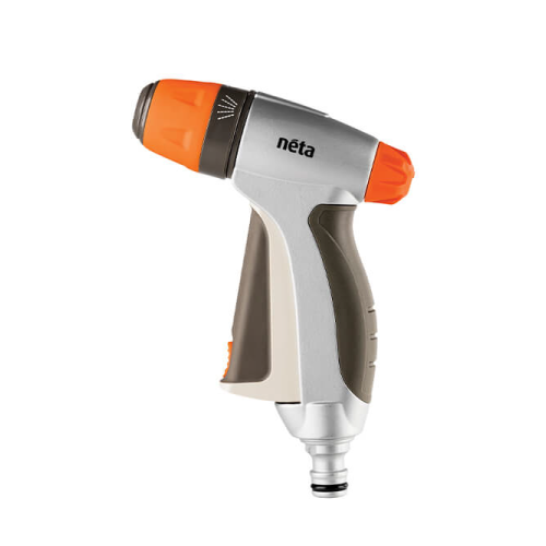 Has 3 spray patterns for general watering and cleaning tasks. It offers pot plant, flower bed and delicate watering options. Flow is adjustable thanks to the adjustable flow dial and the integrated lock ensures watering is continuous when engaged.