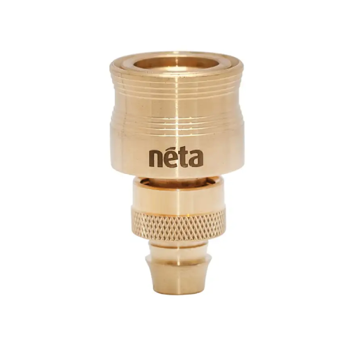 Made from solid brass, this product fits on a 12mm hose and connects to click-on tap adaptors, couplers, guns and nozzles. Features the Neta X-Stream lock ring for leak-free watering.
