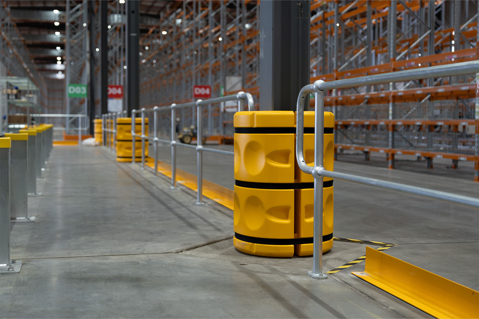 - High-traffic pedestrian or vehicle zones with lower risk of material handling vehicle impact but protection is still required