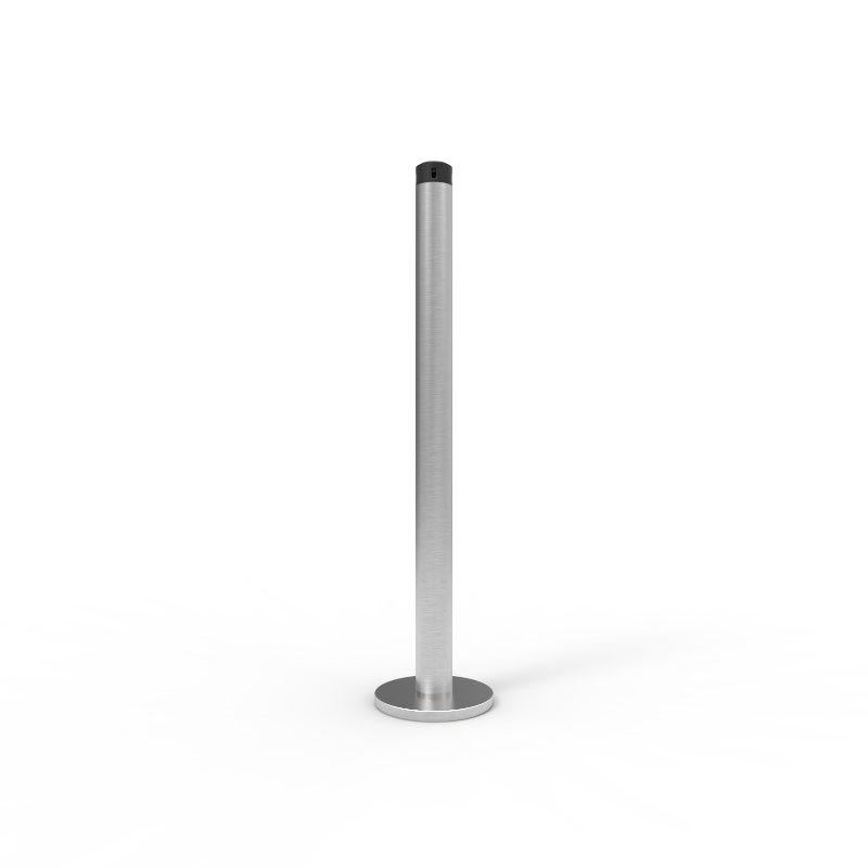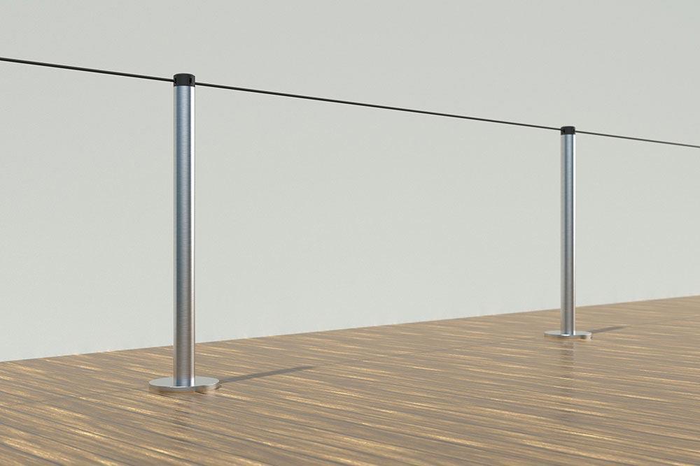 Neata Gallery Surface Mount Post & Base 304 stainless steel 32 x 450 or 900 mm Screw fixed to floor. 100 mm diameter base plate. M10 stud in base plate. 5 mm in four colours. 1.35 kg and 1.85 kg 3 concealed countersunk M8 fixings (not supplied).