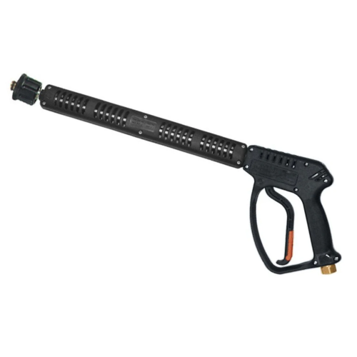 4500 psi (310 bar), 40lpm, 160°C Permissible pressure 5100 psi, 1.1kg 370mm melted handle, stainless steel pipe Inlet 3/8″ BSP M (with swivel) Outlet M22 QC F
