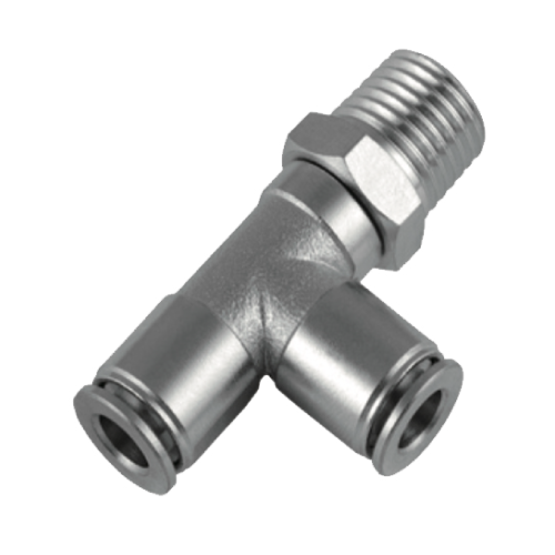 Nickel Plated Brass Threaded-to-Tube Male Run Tee Push-In Fitting