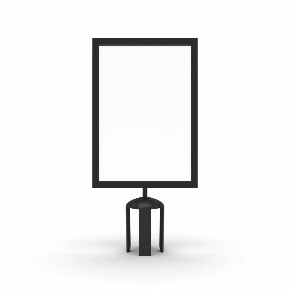 Sleek Design: Our Neata Sign Holders boasts a sleek and sophisticated design, finished in either a classic black powder-coated steel frame or grey powder-coated cast aluminium, they add a touch of elegance to your queue management setup.