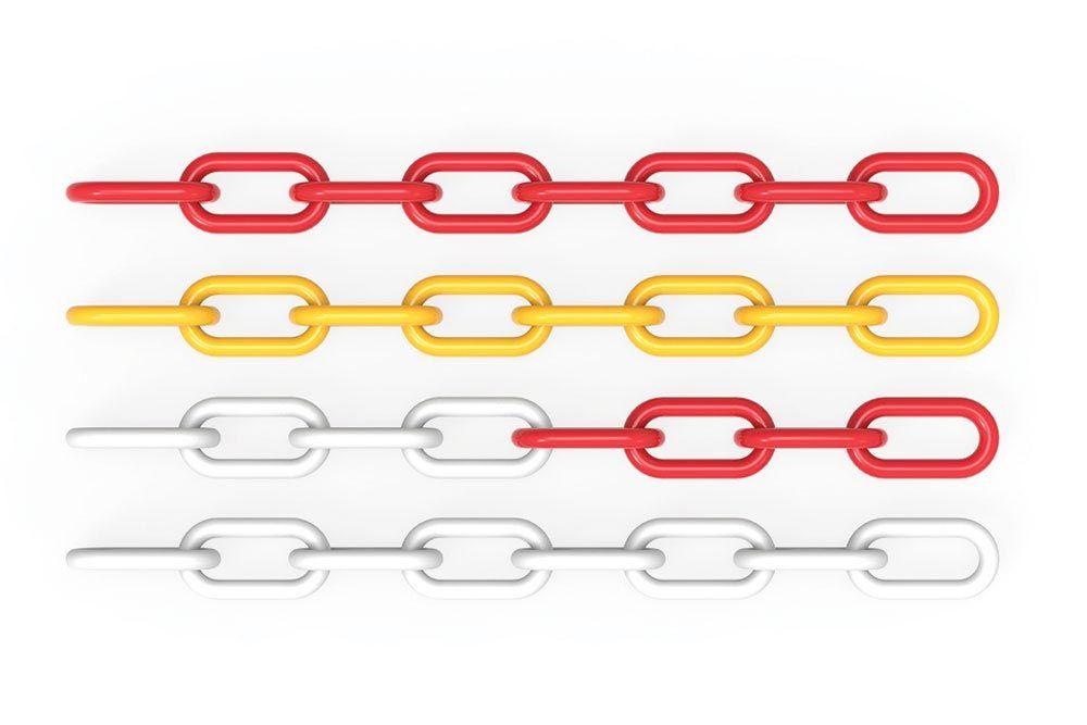 A high strength plastic safety and barrier chain which can be used to cordon off work place and public access areas. Highly durable and in a range of colours it can be used for both indoor or outdoor applications. Sold per 25 metre roll.
