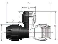 | Code | Pipe x Pipe | A | B | C | D | E | F | Weight (g) |