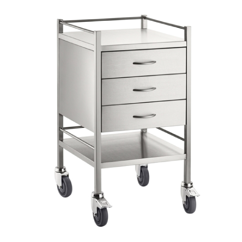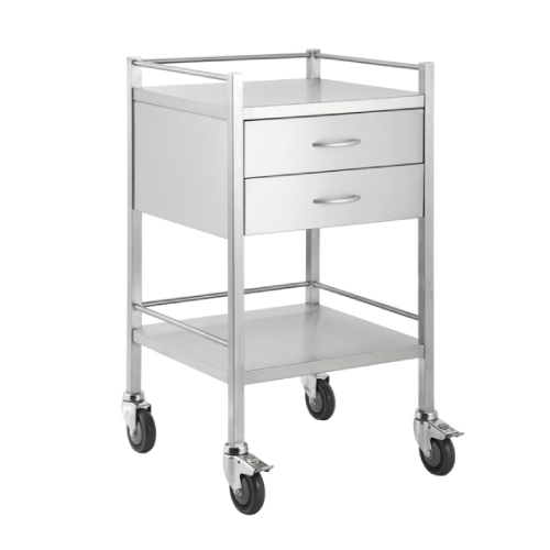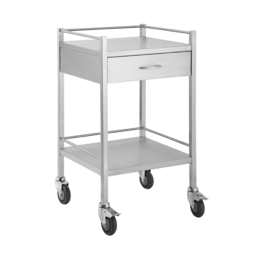 Stainless Steel Medical Trolley Square with Rails and Drawers